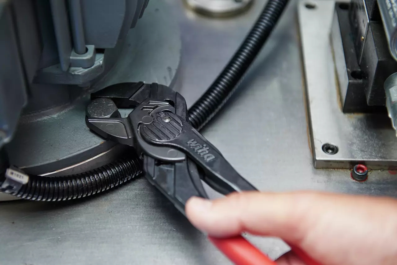 При выполнении монтажных работ в ограниченном пространстве нажимать кнопку для регулировки плоскогубцев затруднительно и непрактично. Плоскогубцы-ключ Wiha решают эту проблему. Работа становится намного быстрее и проще, когда требуемую ширину можно установить непосредственно на заготовке, не нажимая кнопку. Износ и повреждение чувствительных поверхностей сводятся к минимуму благодаря чрезвычайно гладким, параллельно действующим губкам. Увеличенное в десять раз усилие рук значительно облегчает работы по уплотнению и гибке, что соответственно снижает нагрузку на сухожилия и мышечную структуру. Еще одним преимуществом является принцип работы храпового механизма. Ход открытия захватных губок ускоряет закручивание винтов благодаря простому скольжению. Это означает, что доступ к тесным рабочим пространствам заметно улучшается. К другим особенностям относятся самоблокировка, начиная с модели AF 17, а также возможность использования как левшами, так и правшами благодаря функции работы без кнопок.
